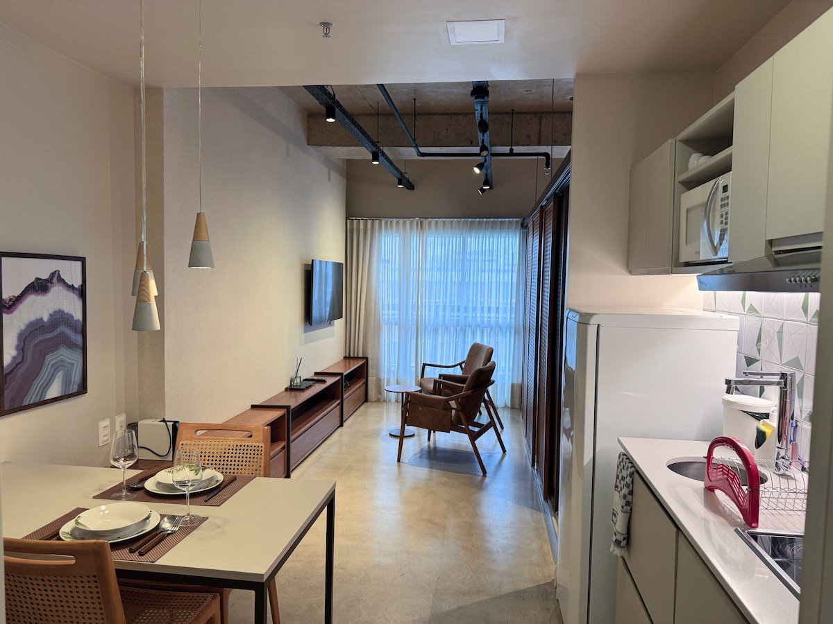 At the Cullinan Hplus Premium hotel. Very new and contemporary. Amazing location! Two malls across the street. Great tourist spots to go on foot. Charming, finely decorated and furnished unit. On the highest floor, with a beautiful view of Brasília and Asa Norte. 29m² luxury suite with king bed. Well equipped with several items for your convenience. Acoustic insulation on the windows for a great rest. Smart TV. Garage. Swimming pool, gym, sauna and restaurant. Check in 24 hours at reception.