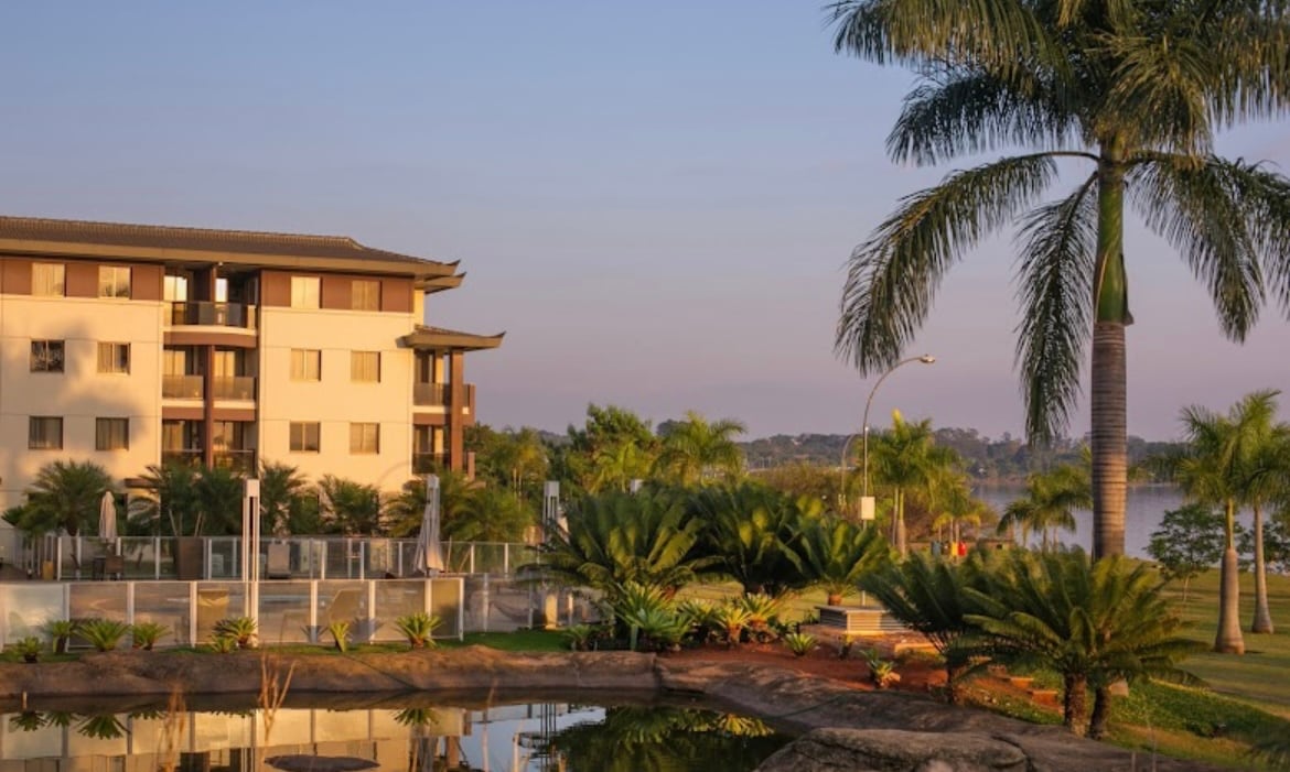 A margem do Lago Paranoá - O Resort é lindo e com muitas coisas para fazer; - Jardins paisagísticos e um ambiente de férias relaxante; - Comodidades como restaurantes, lavanderia, cafeteria, loja de conveniência, pizzaria e salão de beleza; - Academia, (Serviço terceirizado) são pagos a parte, pelo hóspede. - Estacionamento fechado; - Segurança 24 horas; - Roupas de cama e toalhas novas e de ótima qualidade; - Cortinas com blackout; - Mini cozinha com geladeira - Wi-Fi ; - TV a cabo;