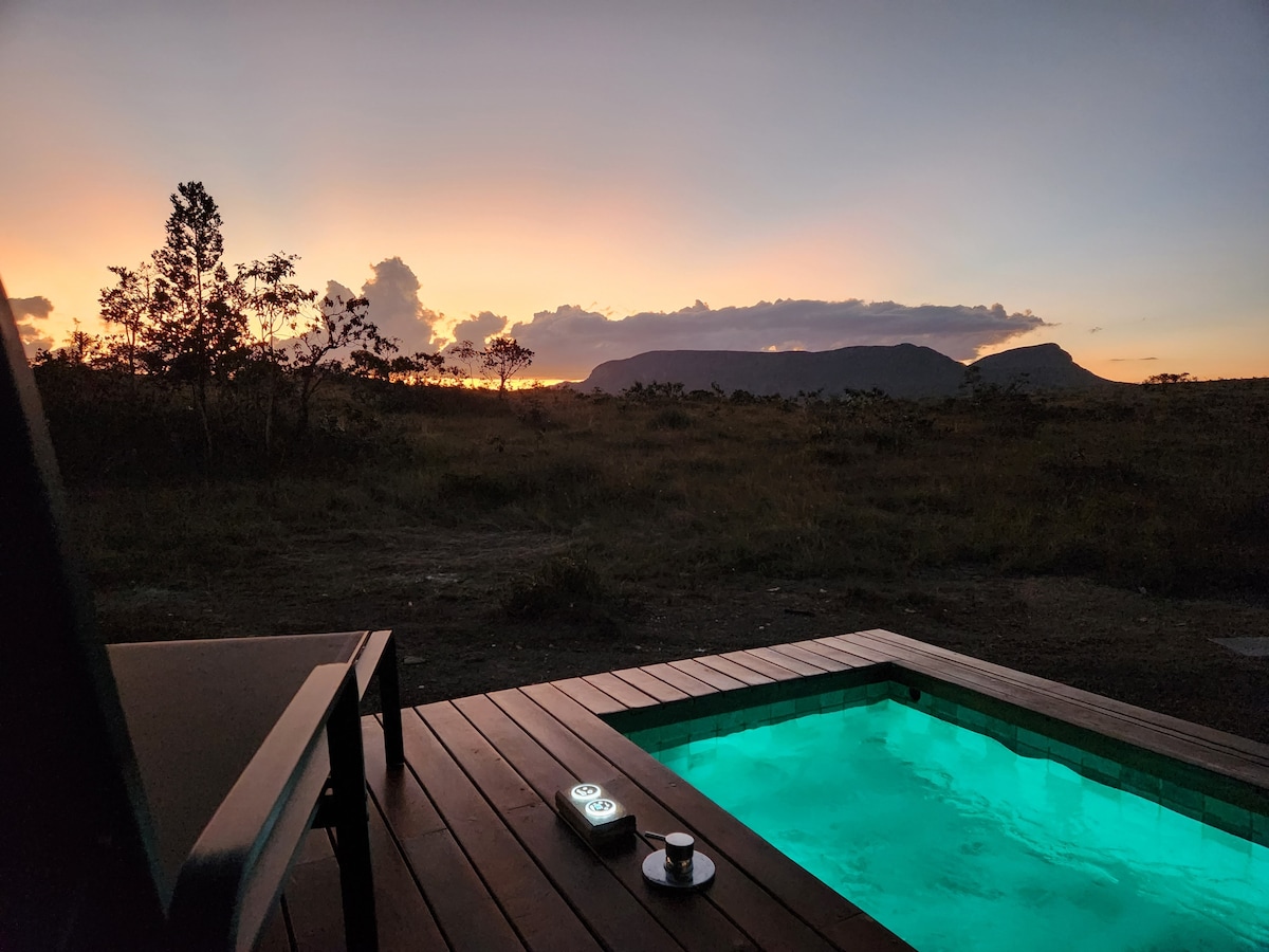 A cabana Átria é um refúgio romântico com vista cinematográfica para as montanhas da Chapada dos Veadeiros. Da hidro ou da varanda, admire a Serra da Boa Vista e o pôr do sol inesquecível. A poucos minutos do Parque Nacional e das principais cachoeiras, a Átria é o lugar perfeito para desacelerar e viver a magia da Chapada. Aqui, o tempo desacelera. O sol nasce entre as montanhas, o silêncio é profundo e as noites são banhadas por um céu estrelado — um convite para viver a Chapada de forma única