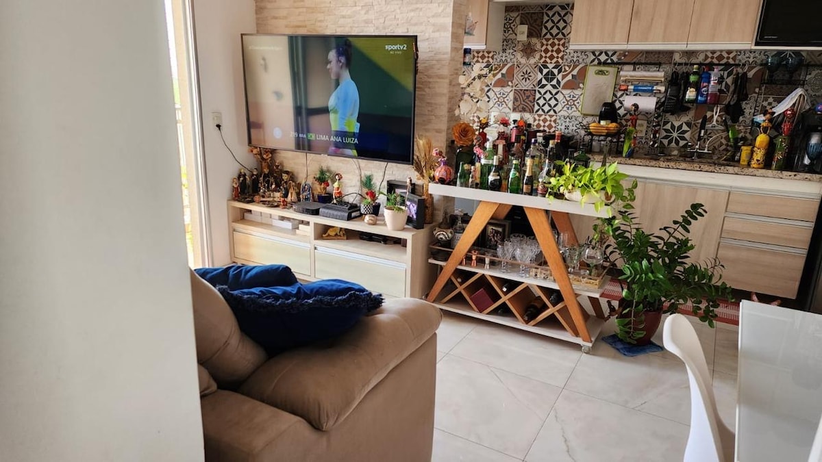 Nosso apartamento fica no térreo é a escolha ideal para quem procura espaço Acomchegante em sua estadia. Projetado para atender as necessidades de casais, famílias e turistas, oferece um espaço único e completo, decorado com bom gosto em cada detalhe. Localizado em um bairro tranquilo e seguro, próximo a supermercados, restaurantes e bares. É uma ótima opção para quem vem fazer procedimentos clínicos, oferecendo um ambiente aconchegante e acolhedor. Venha nos visitar e sinta-se em casa!