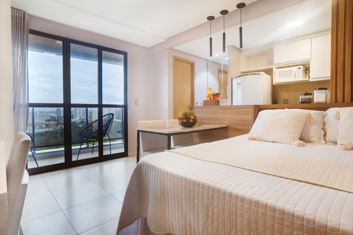 Essa kitnet foi pensada para quem busca praticidade e conforto em um espaço compacto e bem planejado. Tudo em um ambiente limpo, organizado, tranquilo e bem iluminado, ideal para relaxar depois de um dia na cidade. localização privilegiada, bem no centro da cidade ! Próxima de tudo o que você precisar no dia a dia. Supermercados, praças, lavanderias, igrejas, bancos, shopping, comércio, feiras, Hangar( centro de convenções). Podendo ir a pé ou 5 a 7 minutos de Uber.