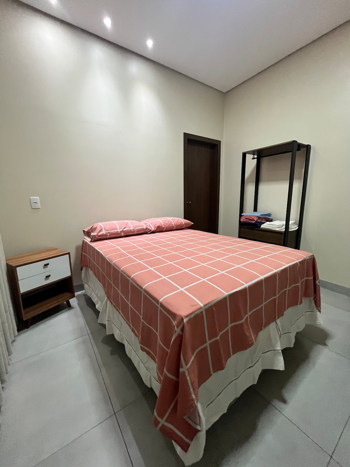 Suíte familiar de 38m², totalmente privativa e independente, localizada em uma charmosa residência de 850m² dentro de um condomínio fechado na área da Embrapa – um verdadeiro refúgio urbano. O espaço é integrado e conta com um elegante mezanino, oferecendo conforto para até quatro hóspedes. Dispõe de cama de casal, uma ampla mesa de trabalho (2,4x1,1m) e duas camas de solteiro no mezanino. Uma estadia tranquila, com charme, funcionalidade e muito aconchego. Café da manhã como cortesia.