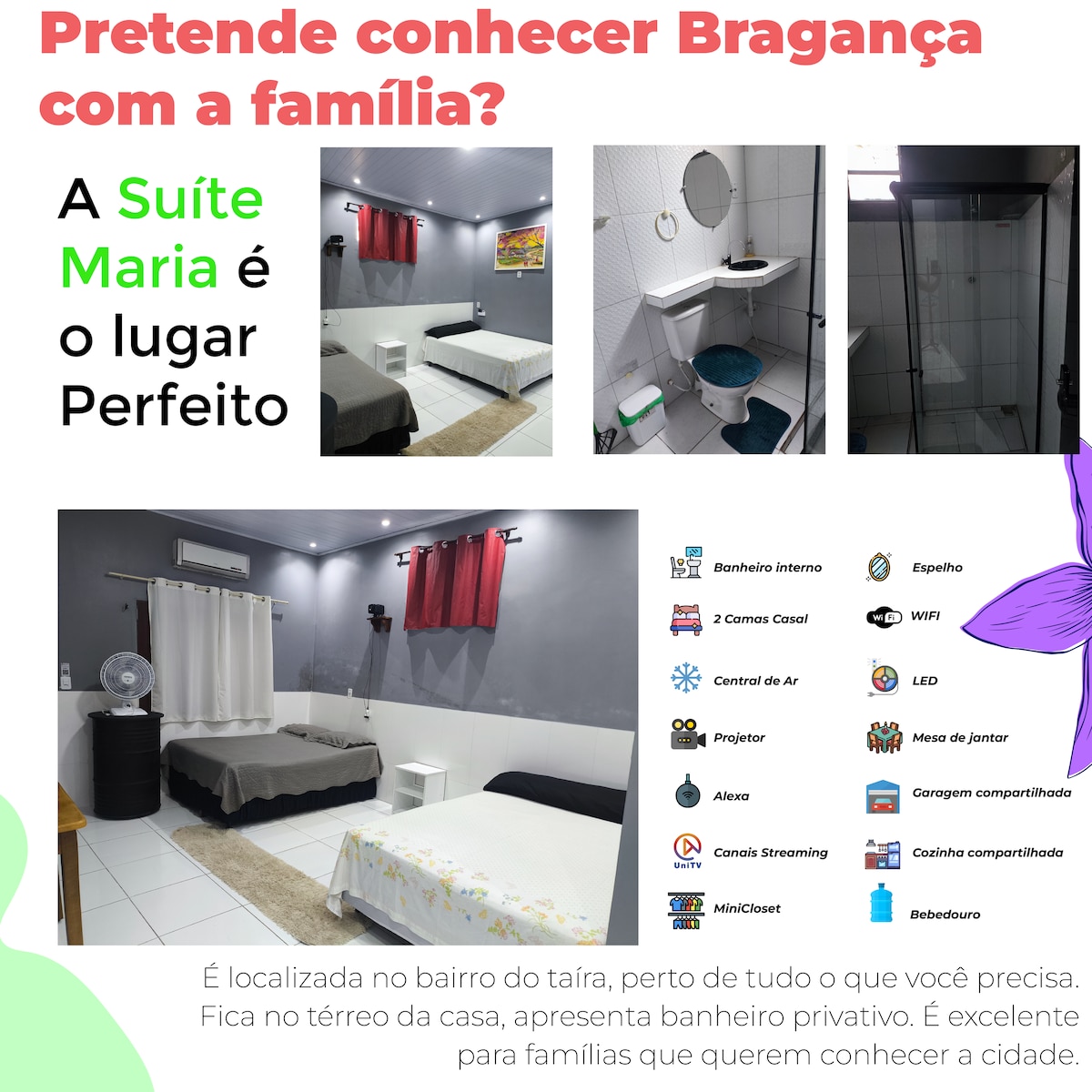 🌴 Enjoy Belém with comfort and convenience! Stay in a brand-new suite in the Umarizal neighborhood, with a private entrance, double and single beds, air conditioning, minibar, free Wi-Fi, and a private bathroom with an electric shower. Just 15 minutes from the airport and close to top tourist attractions like Ver-o-Peso Market, Estação das Docas, Mangal das Garças, and the Basilica of Our Lady of Nazaré. ✨ Clean, cozy, and ready to welcome you!