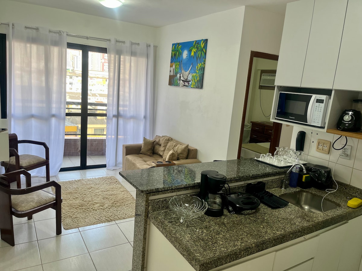Local ideal para descansar ou trabalhar. Flat aconchegante na praia de São Marcos, ao lado da praia da ponta da areia. Nascente e situado no último andar, ventilado e silencioso. Estacionamento rotativo, serviço de limpeza, internet e tv a cabo já inclusos. Próximo a tudo o que vc precisa. Poderá ir à pé a restaurantes, bares, farmácias, lavandeira etc.. . Mas se quiser ir de carro, estará próximo de shoppings e mercado. Importante: A água quente no chuveiro é morna. Não é muito quente.