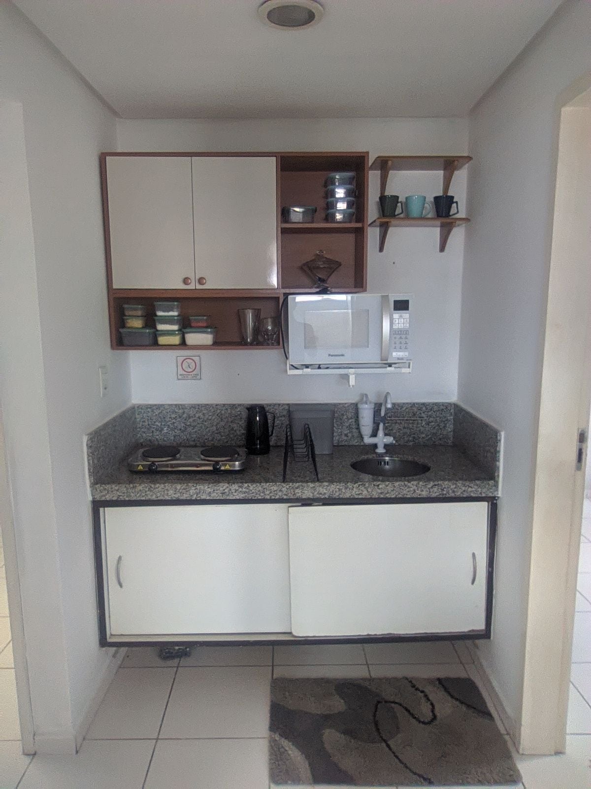 Flat mobiliado na melhor localização de São Luís, em frente à praia. Próximo a bares e restaurantes. Ótima área de lazer com piscina e academia. Flat conta com serviço de camareira diariamente, organizando e limpando o apartamento se o hóspede desejar. Ar condicionado, cama queen, roupa de cama e banho, panelas, pratos e talheres, segurança e recepção 24h.