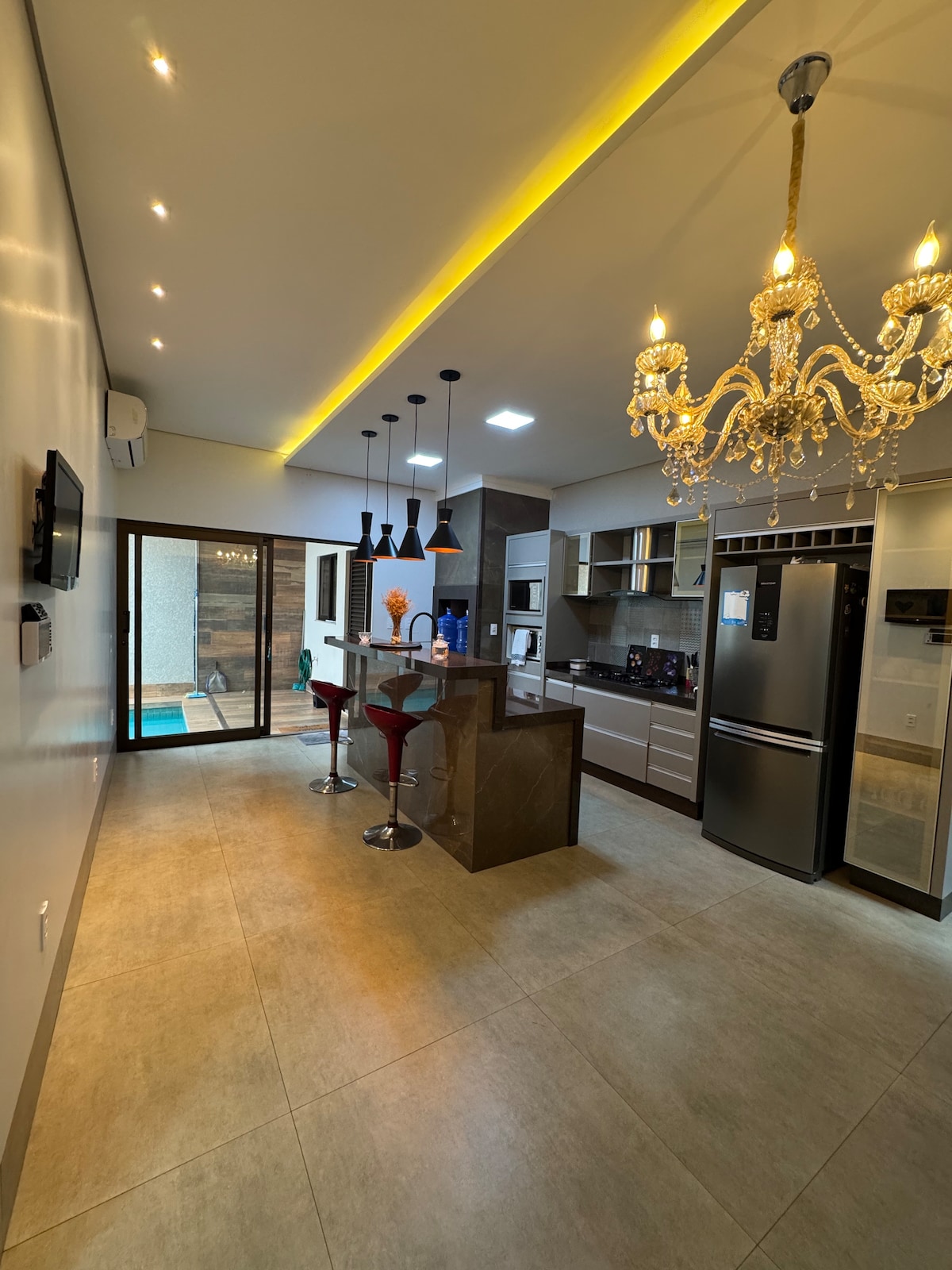 Aconchego de Tangará – ideal para famílias. Casa completa, com dois quartos (uma suíte), banheiro social, sala com sofá-cama, cozinha gourmet equipada, área de serviço e garagem para dois carros. Todos os cômodos têm ar condicionado. Ambiente espaçoso e acolhedor, com piscina privativa para momentos especiais em família ou entre amigos. Perfeita para uma estadia confortável em Tangará da Serra.
