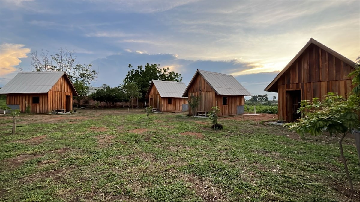 Relaxe neste espaço calmo e cheio de estilo. Localizada no Vale da Benção, 10km do centro de Chapada dos Guimarães e vizinha a duas vinicolas e perto de várias opções de passeios, como Vinicola Locanda do Vale, Alambique Geodésica, Mirante Alto do Céu e Parque Nacional Chapada dos Guimarães. Cada cabana possui cama casal queen, banheiro e uma pequena copa/cozinha. Na área externa uma varanda com vista panoramica com cadeiras, mesa, ombrelone e churrasqueira gengis-khan.