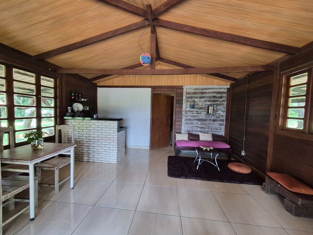 Bem-vindo ao nosso refúgio na natureza! A casa esta 100% equipada, podendo acolher confortavelmente 5 pessoas. Casa com 2 quartos (ambos com ar condicionado), sendo uma cama de casal e 3 de solteiro+ colchão e roupa de cama 100% algodão 180 fios. 1 banheiro com chuveiro elétrico. Cozinha com jogo de panelas, geladeira e fogão. 1 Sala equipada com um sofá cama, chaise cama, TV smart e Wi-fi. 1 Máquina de lavar roupas. Atrás da casa tem uma cachoeira linda. A chácara está a 5 km da praça central.
