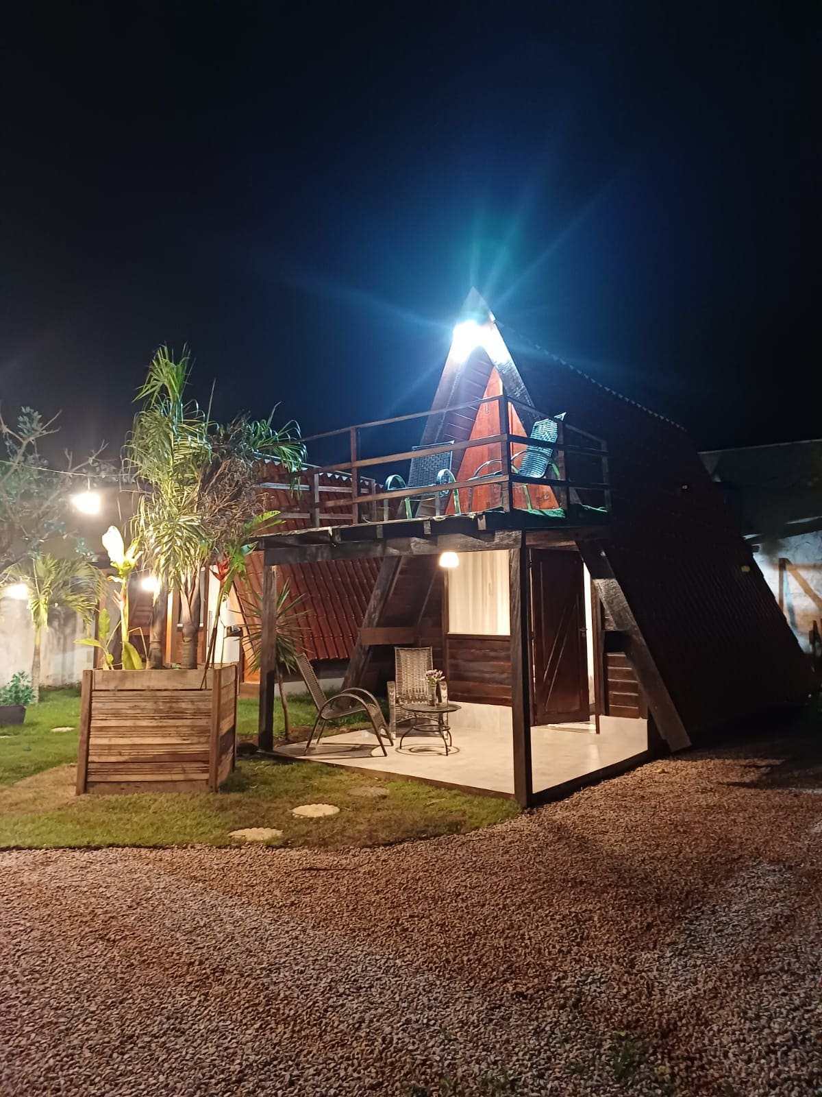 Este lugar único tem um estilo próprio. Um chalé de dois andares e dois quartos, com um terraço perfeito pra relaxar e apreciar o ceú. Também temos nossa varanda térrea para desfrutar. Lugar tranquilo ao lado de muito verde, porém próximo ao centro da cidade. Oferecemos pequeno café da manhã self service disponível no quarto.