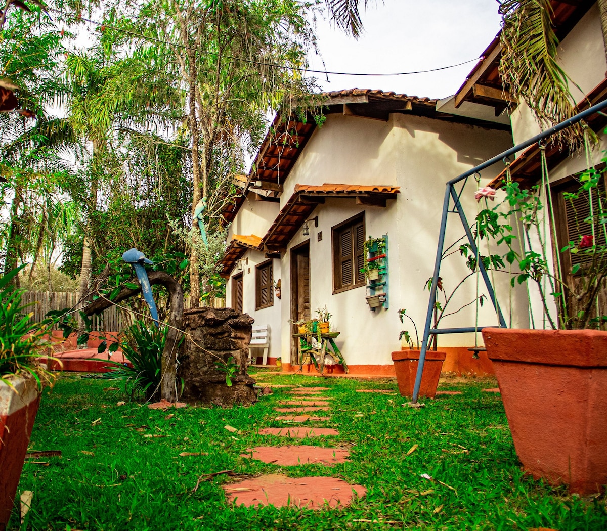 Viva novas experiências em Chapada dos Guimarães. Relaxe com o som dos pássaros no deck a beira de um lago com praia, e tudo isso no centro da cidade. A Vila Bom Clima é composta por 1 casa principal e 4 bangalôs, e é localizada no bairro Bom clima, a 1,5km da praça central de Chapada dos Guimarães. Possuí uma área externa em comum para os hóspedes da casa principal e dos bangalôs, com lago artificial para banho e um amplo gramado. Aceitamos Pet porte pequeno 🐾