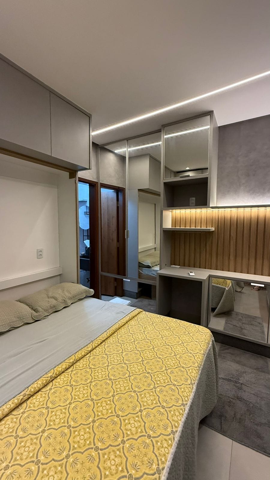 Apartamento de 3 quartos todos com ar split sala com ar cozinha com geladeira fogao de 6 bocas , microondas , purificador de agua , liquidificador , sanduicheira, chaleira etc. Quarto suite com cama queen e TV 42 , quarto casal cama padrão , Quarto solteiro com 2 camas e 1 cama extra e armario , sala com painel de TV ,46 polegadas tabua de passar , ferro, máquina de lavar, Banheiro c/ secador Localização privilegiada próximo ao shopping, supermercados, panificadoras, bares e restaurantes