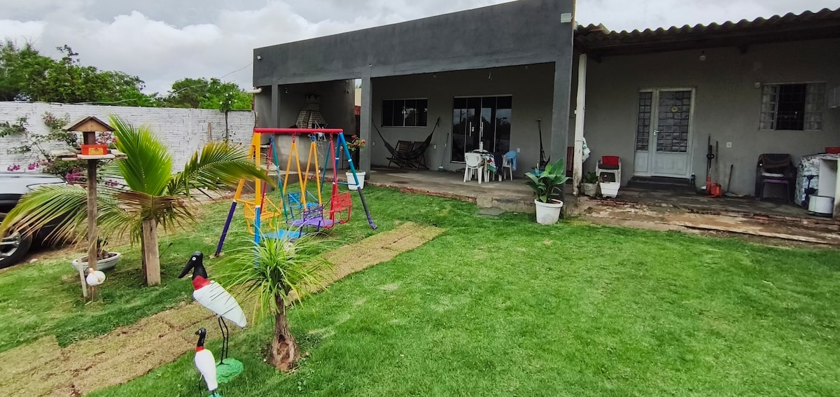Localização: Charmoso chalé de madeira de 90m² de área construída em terreno de 2.250m² dentro de condomínio fechado de fácil acesso integrado à natureza. Aréa externa: Piscina, varanda, pergolado com redário, lavanderia completa e estacionamento amplo. Área interna: 3 quartos (sendo uma suíte) - todos com cama de casal, todos com ar condicionado, ventilador e armários. 2 banheiros (suíte e social). Sala de estar com tv smart e wifi. Cozinha completa.