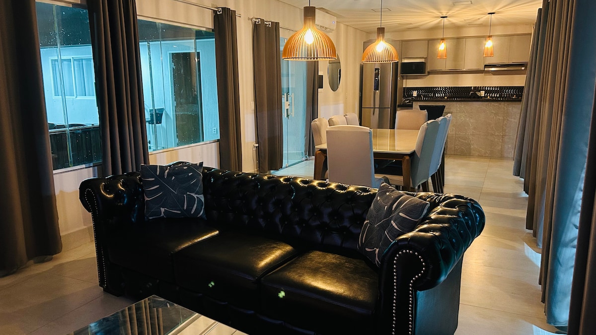 POR QUE VAI QUERER ESSA ACOMODAÇÃO ÚNICA? - Spa de hidro (Aquecedor, hidroterapia e cromoterapia) - Ar condicionado todos os quartos - 03 quartos, sendo 01 suíte c/ ar, (enxoval de cama e banho, completo) - Área Gourmet(churrasqueira com todos utensílios) - Pet friendly - Wi-fi com 400mb - TV 55'' Smart Samsung 4k(Youtube Premium, Netflix e Amazon prime + de 140 canais) - Cozinha completa com louças e talheres, destaque para as taças de vinho - Árvores frutíferas - Jogos de tabuleiro