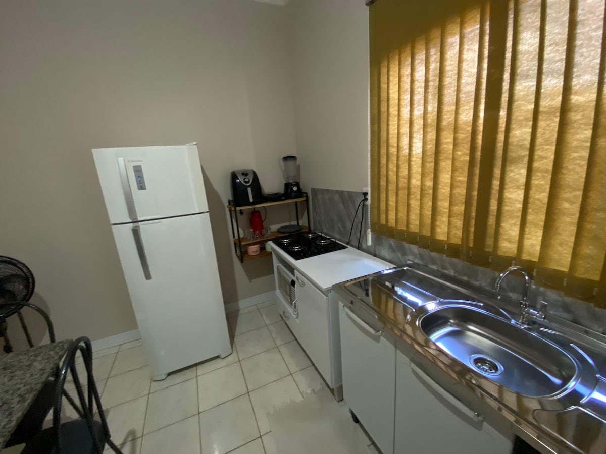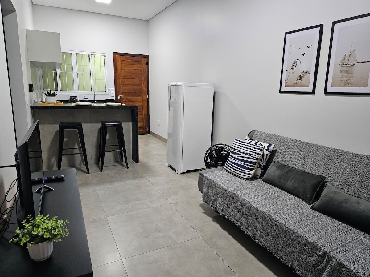 Refúgio na Chapada, perto do centro, para relaxar com conforto e privacidade. • Check-in autônomo, a seu tempo (a partir do horário de entrada) • Garagem privativa • Wi‑Fi rápido • Cozinha equipada para o preparo de suas refeições. • Ar Split 18.000 BTUs: ambiente climatizado em minutos. • Smart TV 43” - Amazon Prime incluso + apps como Netflix, Globoplay - fazendo o login usando a sua conta). • Alexa: peça suas músicas favoritas Obs.: Não possui canais abertos de TV, somente "streaming"