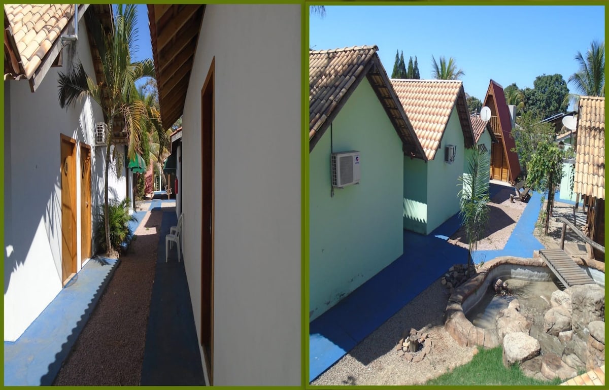 Você vai adorar este lugar único e romântico. A 1.5km da praça do centro. Rua das Camélias, qd 04, casa 09, Chapada dos Guimarães MT. Tem portão eletrônico, cerca elétrica e alarme, além do local ser monitorado por empresa de segurança. Área externa: 12m2 de pergolado privativo, com rede. Área interna: Espaço de 20m2, com banheiro privativo, Wi-Fi, cama de casal queen. Ar condicionado, frigobar, liquidificador, sanduicheira, fogão elétrico de uma boca, panela, talheres, copos, xícaras e pratos.