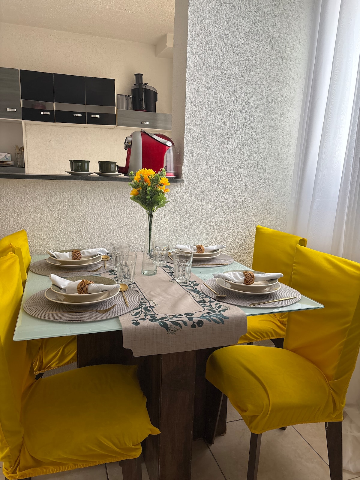 Apartamento com dois quartos, ambos com ar condicionados, ventiladores de teto e dois banheiros, sendo uma suíte. Incluso roupa de cama e banho. *Sala de estar com sofá, tv e ventilador de teto. *Cozinha equipada com fogão, geladeira, microondas, cafeteira, utensílios de cozinha. *Área de serviço com máquina de lavar. *Área de lazer com piscina e quadras de esportes. *Duas vagas de garagem cobertas. *Localizado próximo às principais universidades, mercados, farmácias, shopping, restaurantes...