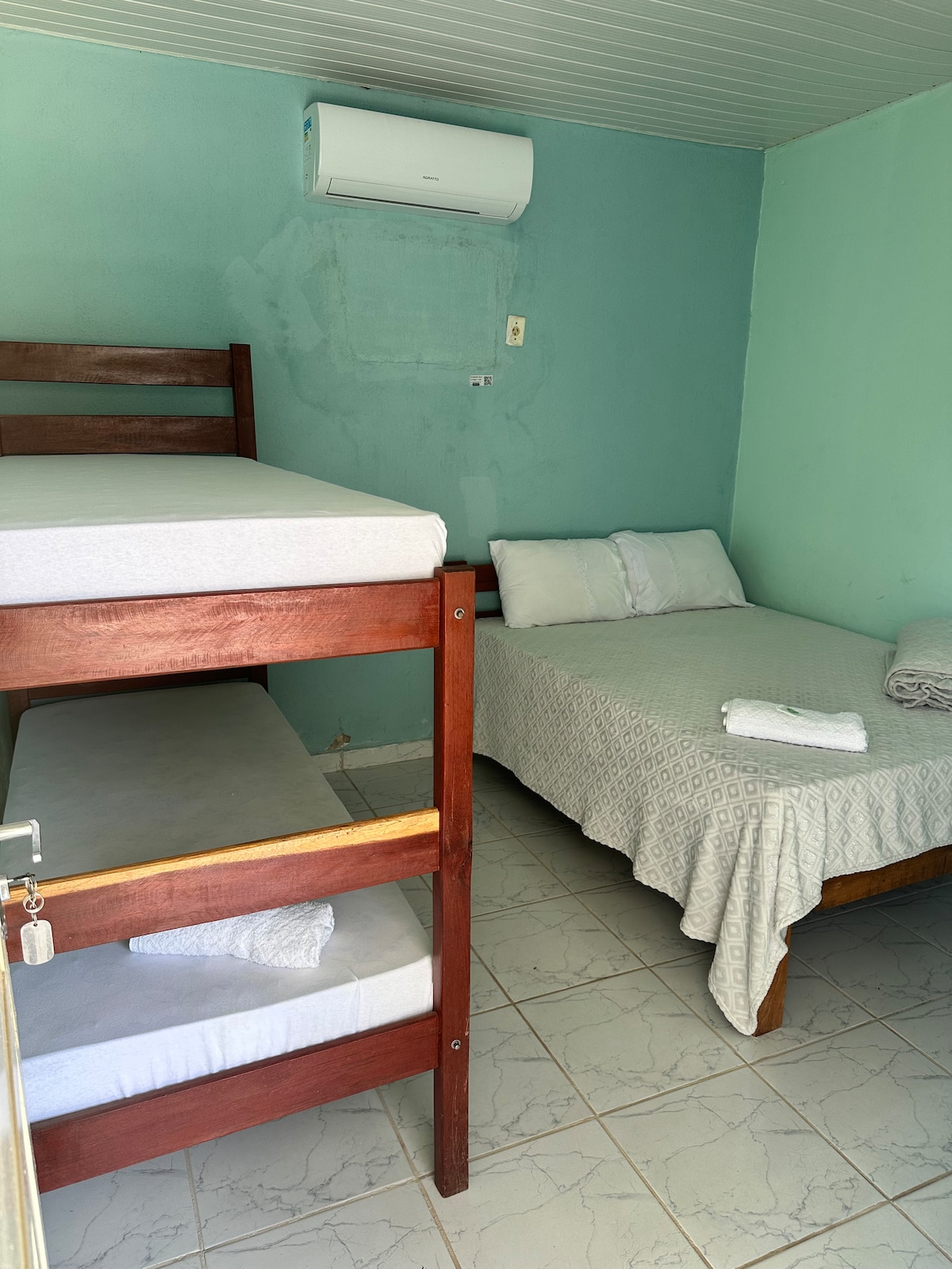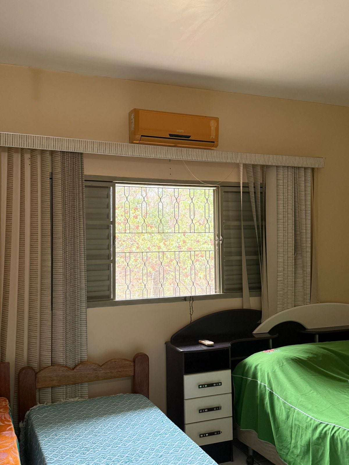 Casa, hidro, piscina, churrasqueira, portão, pátio: tudo privativo Garagem coberta WiFi TV maq roupa Fogão Geladeira Forno filtro microond bancos+mesas+cadeira *Área coberta 16-30 confraterniza Para pernoite e area interna reserve 2+ diárias, entra 15h, sai 8h, até* 8 cama: 1 a 6 hóspede recebe 2 quartos: 1 grande com ar, 3 camas Queen e 2 solteiro une queen, blackout, arara, banheiro externo 1 suíte, ar, 1 cama casal Reserva 7 ou + hóspede para 3° quarto com ar e cama Queen, colchão no chão