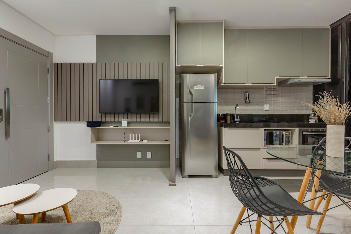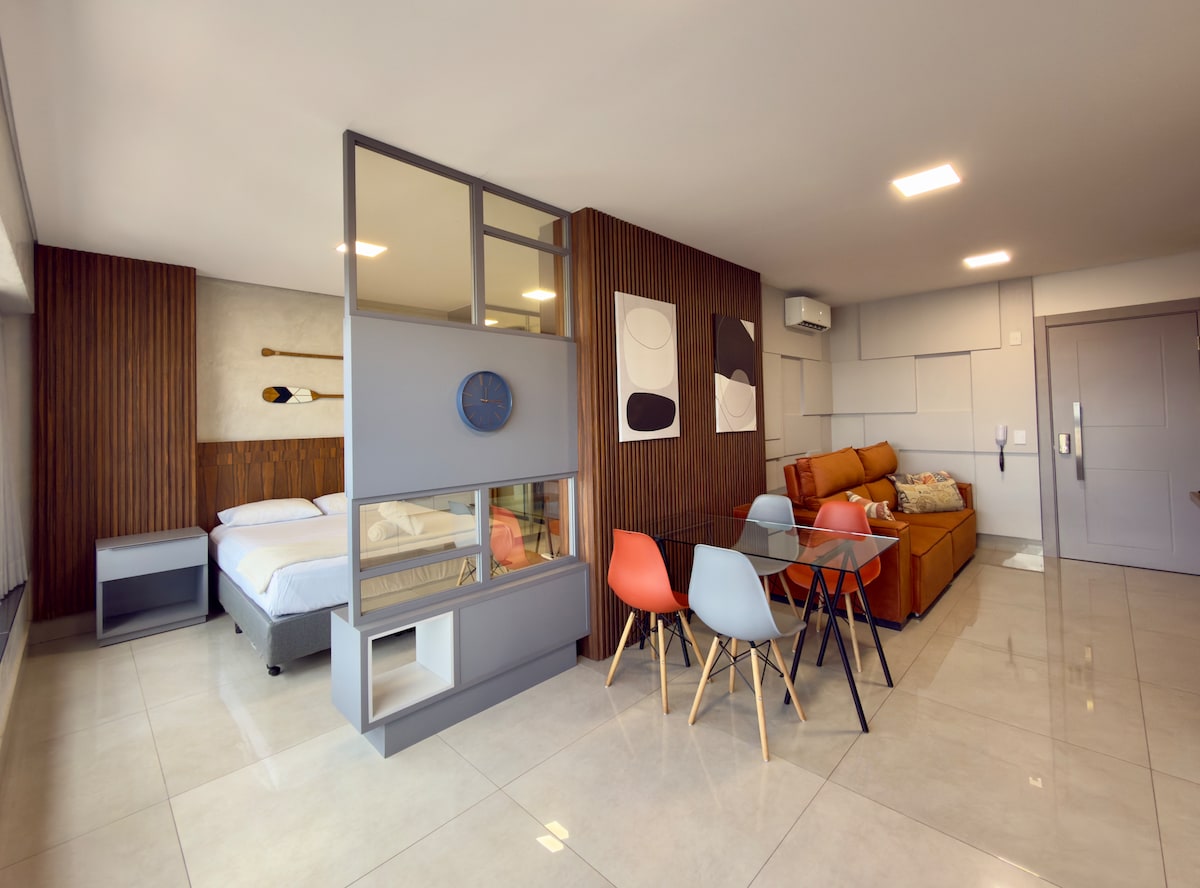 Com decoração inspirada em Bali, esse studio sofisicado possui uma atmosfera que evoca a tranquilidade das praias e florestas de Bali. Aqui você poderá descansar nos melhores enxovais da Mmartan. Possui cozinha completa, com fogão, forno elétrico, microondas, sanduicheira, liquidificador, cafeteira nespresso e chaleira elétrica. E para continuar a sensação relaxante, você poderá usufruir da vista mais linda da cidade com piscina de borda infinita no 20º andar. Apaixone-se por essa hospedagem!
