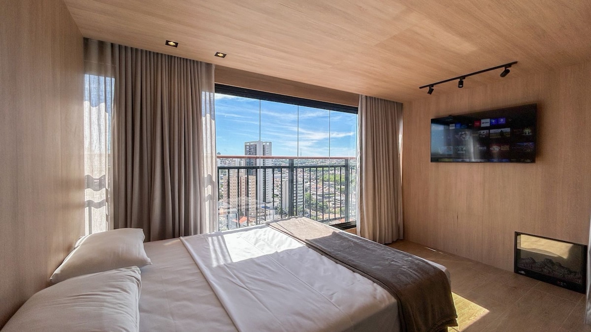 Muito conforto e praticidade, no 18º andar, e na melhor região de Campo Grande. Próximo à avenida Afonso Pena e ao Shopping Campo Grande. Estúdio conta com ar condicionado, cama Queen Size, Tv 55' c/ Netflix, cozinha compacta, sofá cama. Dispomos de colchões extras. Temos opções de Cesta Café da Manhã e Pacote de Decoração Romântica. No Vertigo Premium Studios você tem acesso a Salão de Beleza; Sauna; Piscina Aquecida e com Borda Infinita.