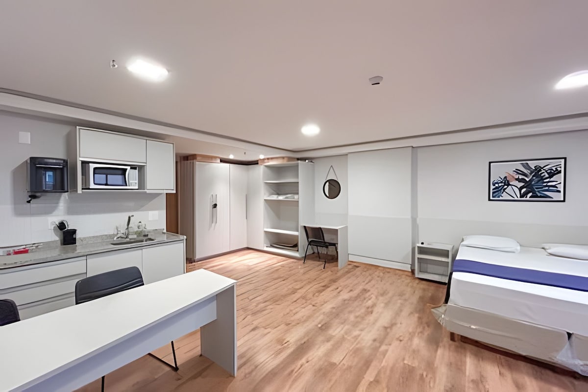 Com decoração inspirada em Bali, esse studio sofisicado possui uma atmosfera que evoca a tranquilidade das praias e florestas de Bali. Aqui você poderá descansar nos melhores enxovais da Mmartan. Possui cozinha completa, com fogão, forno elétrico, microondas, sanduicheira, liquidificador, cafeteira nespresso e chaleira elétrica. E para continuar a sensação relaxante, você poderá usufruir da vista mais linda da cidade com piscina de borda infinita no 20º andar. Apaixone-se por essa hospedagem!