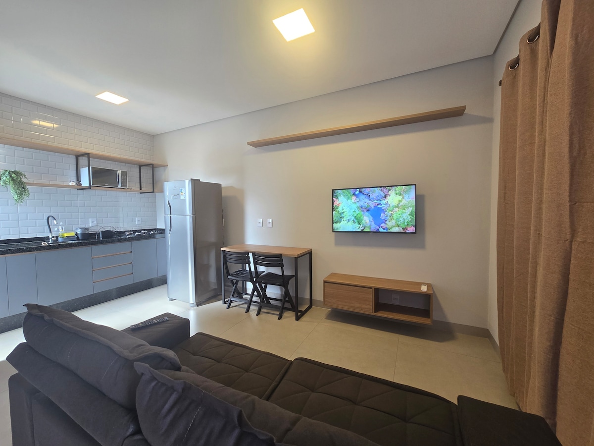 O melhor custo-benefício de Bonito – charme, localização e conforto! Flat completo com cama queen, sala com TV e sofá-cama casal, cozinha equipada, jardim de inverno e banheiro. Com itens de qualidade, janelas amplas e decoração rústico-chique. A poucos minutos da praça central e dos principais restaurantes. Possui vaga privativa, portão automático e entrada por reconhecimento facial. Sofisticação, segurança e praticidade. Adoraríamos receber sua família!