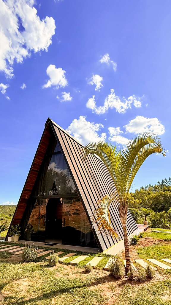Seja bem-vindo ao nosso charmoso chalé de estilo A-frame, onde o conforto encontra a natureza. Localizado em um cenário deslumbrante cercado por palmeiras, o nosso chalé oferece a escapada perfeita para quem busca tranquilidade e contato com a natureza. Desfrute de um interior bem decorado, sala de estar confortável, cozinha totalmente equipada, e um mezanino perfeito para relaxar. Relaxe no nosso jardim, aproveite o fogo de chão sob as estrelas, ou tome um banho relaxante em nosso spa.