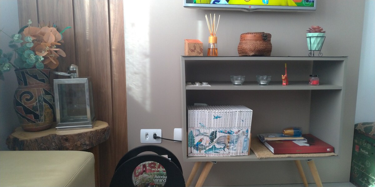 Suite aconchegante. Sendo: Um quarto com cama de casal, um armário, duas araras de parede, duas mesinhas de cabeceira, uma luminária, ar condicionado, ventilador de teto. Banheiro completo, água quente e fria, mesa de trabalho, frigobar, tv,um sofá, um armário, uma mesinha de apoio, ventilador de teto e ar condicionado, uma cadeira. Mesa de trabalho, tv . Tudo muito bonito, tranquilo, conforto e higiene a seu dispor.