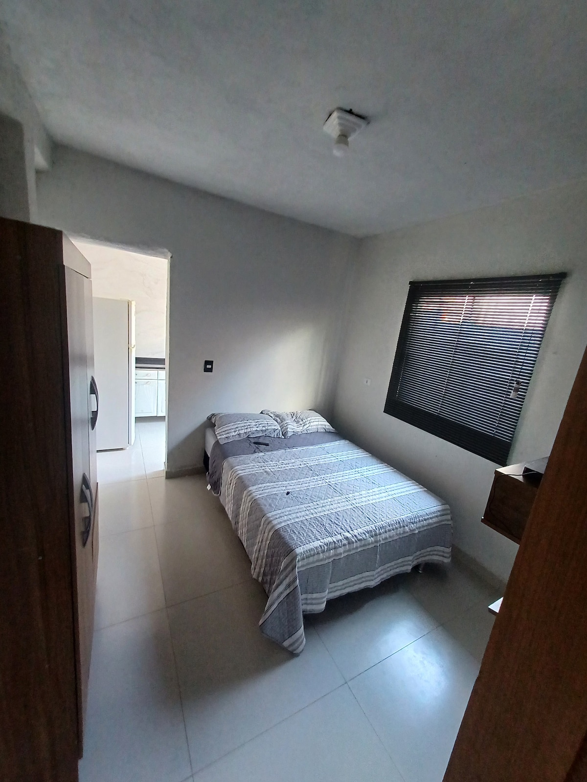 Edícula com ar condicionado, (Fica nos fundos da residência principal) área com churrasqueira/cozinha com porta. Possui um quarto e um banheiro. Temos uma piscina pequena (não é aquecida) para relaxar no fim de tarde. Área bem privativa e reservada para os hóspedes. A casa fica há 10 minutos do centro e próxima ao principal mercado da cidade. Bairro tranquilo, agradável e seguro. A área dos fundos junto com a piscina é privativa dos hóspedes, não sendo compartilhada com os proprietários para uso