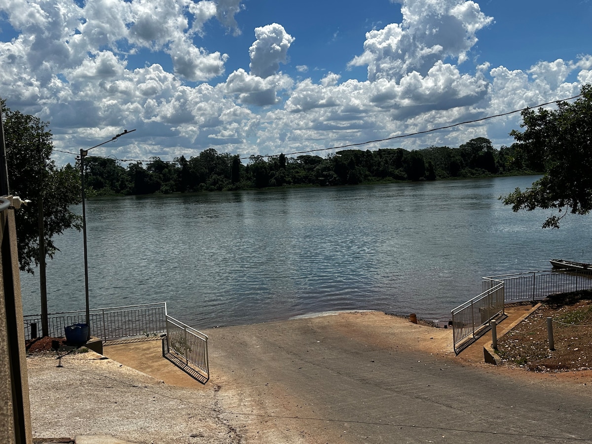 De frente ao Rio Paraná , em Pres. Epitácio. Ficamos em um Residencial portão fechado com belíssima praia à frente da casa. Possui deck superior com vista ao rio e ao pôr do sol eleito "O mais bonito do Brasil". Três quartos sendo duas suítes (todos com ar-condicionado) um banheiro social, um banheiro área da piscina. Piscina 6X 3 (aquecimento opcional de out a março) Próximo a excelentes opções de aluguel de barcos para pesca. À 16 minutos de Pres. Epitácio . @ranchoalemdohorizonte