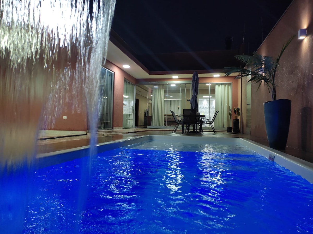 "🌟 Seu refúgio perfeito para lazer e relaxamento! Mergulhe na piscina privativa 🏊♂️, prepare um churrasco delicioso 🍖 e aproveite momentos de diversão no bilhar 🎱 ou fliperama 🕹️. Quando a noite cair, relaxe no conforto do quarto com um projetor para filmes inesquecíveis 🎬. Cada detalhe foi pensado para transformar sua estadia em uma experiência única, repleta de conforto e tranquilidade. Venha viver momentos especiais em um ambiente que combina descontração e estilo!"