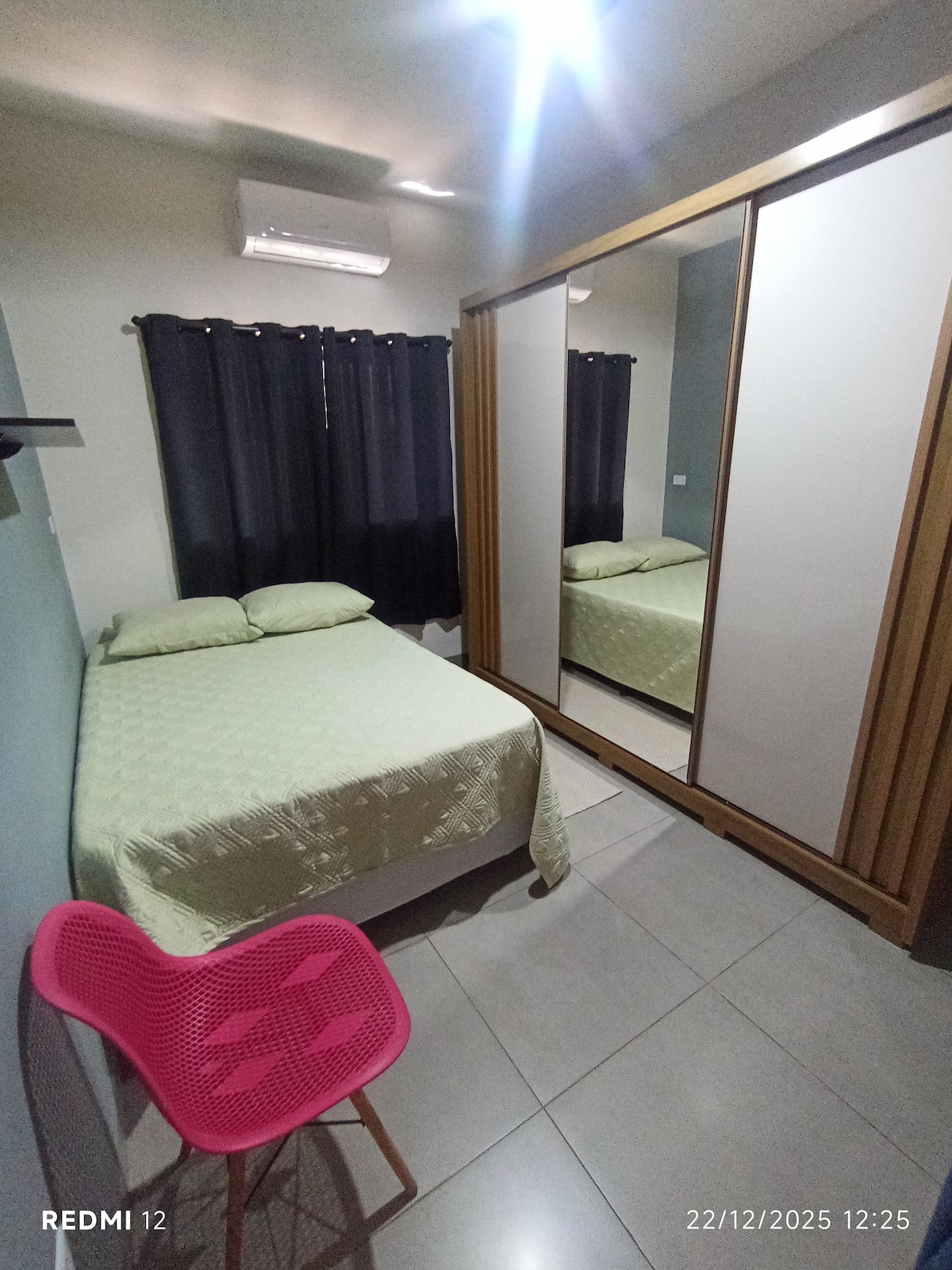 O quarto possue cama de casal e solteiro, guarda roupas, banheiro privativo,ar condicionado , geladeira na entrada, está incluso agua,energia internet,roupas de camas ,(sabonete,papel higiênico até de 5 dias), cozinha com micro-ondas geladeira de uso geral , armários e outros utensílios básicos. Bairro residencial de alto padrão, central ,perto de hospitais, supermercados,UNIRV,fórum, cartórios... com vias de acesso rápido ao shopping, Tecnoshw...