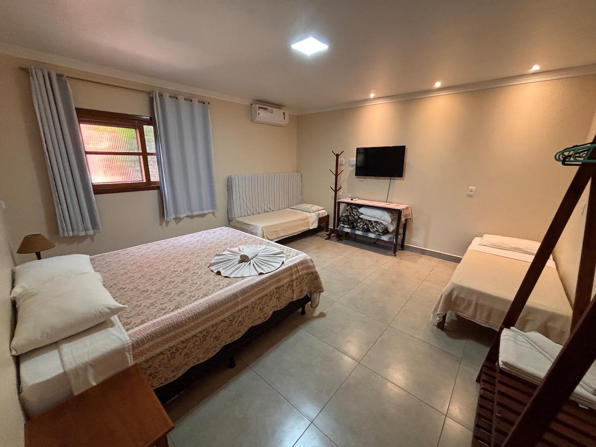 Nossa suite é bem confortável, melhor custo beneficio para uma estadia curta, tem ar condicionado, tv,banheiro privativo,bem localizado proximo ao Hospital Regional, restaurantes, lanchonetes, doceria otima, supermercado, proximo ao parque da cidade,tudo para seu conforto e comodidade,garagem coberta,e acesso rápido para rodovia,melhor custo beneficio.......