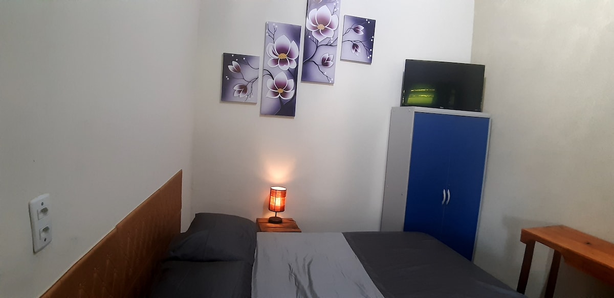 Suíte anexa a minha casa, com entrada independente, ideal para quem viaja sozinho ou casal, e ainda tem como apoio a minha cozinha, a rua calma e a vizinhança tranquila, sem barulho, bem-localizada, pode ir a pé para passear no centro e na praça onde ficam os restaurantes, agências e lojinhas.