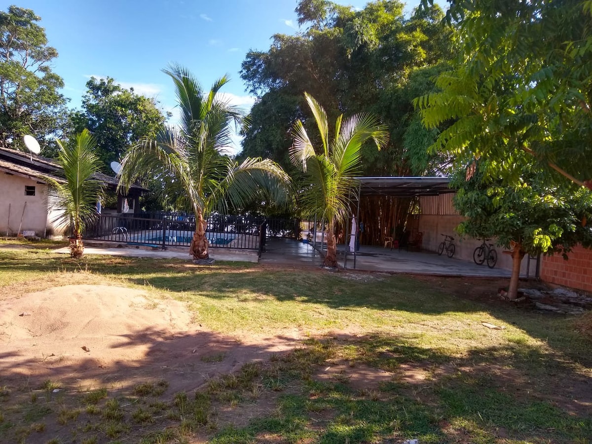 Leve toda a família a este ótimo lugar com muito espaço para se divertir. Local bem tranquilo exclusivo para locação familiar, cozinha completa de utensílios, churrasqueira equipada com espeto e grelha, piscina bem clorada e cuidada. camas com lençol. É locar chegar e usar, tudo prontinho para sua família!!! Aceitamos Pets , não oferecemos toalhas, travesseiro, cobertas e material de higiene pessoal.