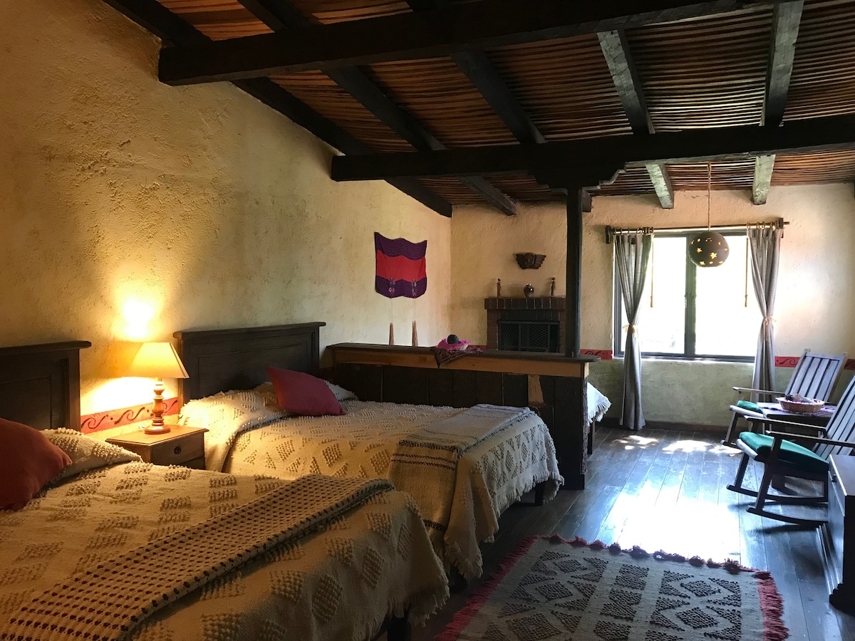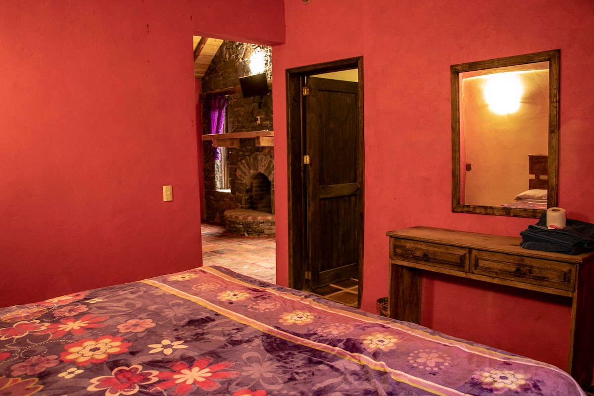 It has a garden and natural swimming pool, exclusive for you. Decorated and furnished to detail. With two sleeping areas, one in a small loft and the other on the bottom part, both queen size beds, quality linens and hypoallergenic pillows. Among the hills of the mythical Malinalco, we are located in a rural community, you´ll be able to experience it´s daily life, activities and the sounds of the country side will make you forget about the city rush. Perfect for artists, meditators and couples.