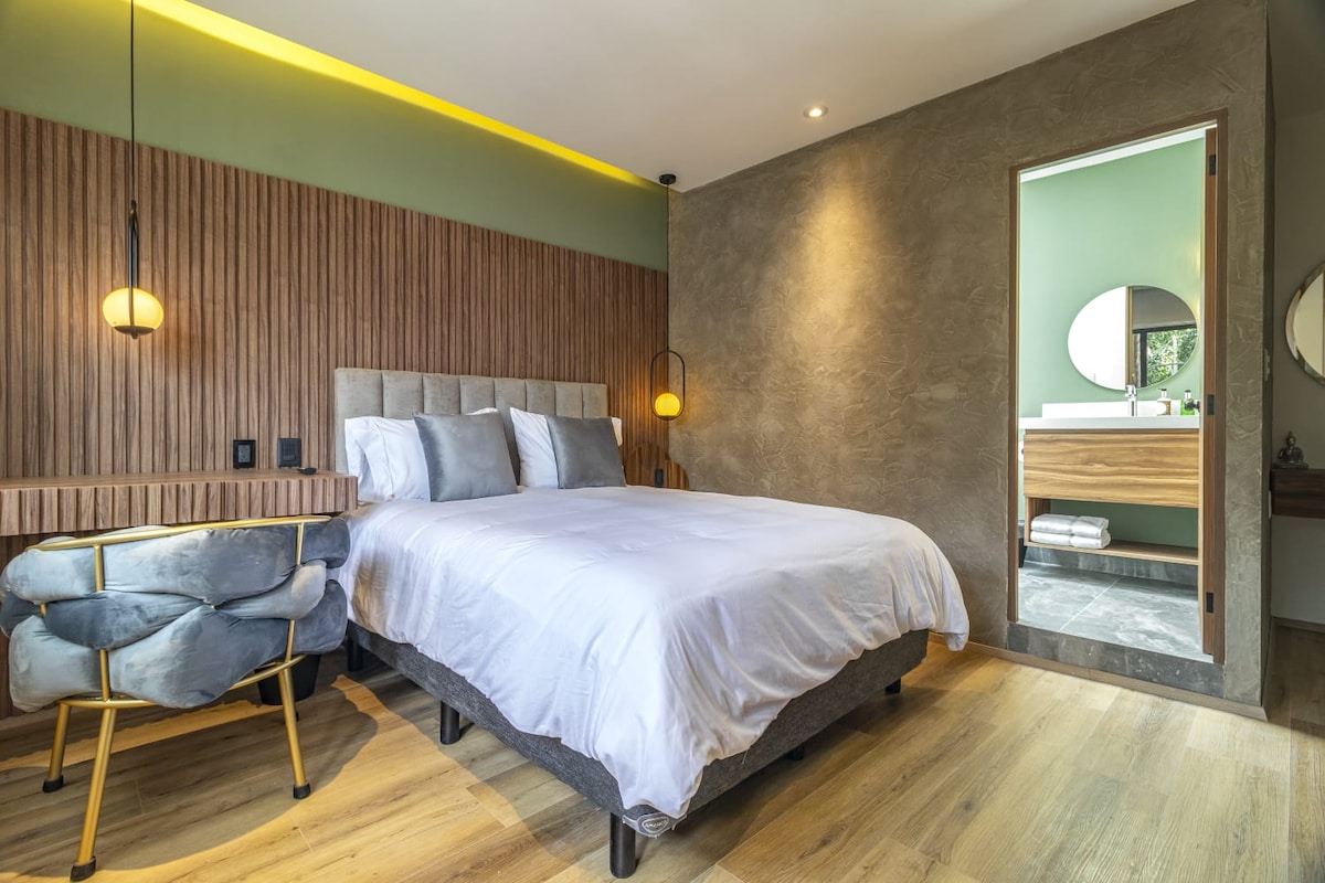 塔塔拉酒店( Tatala Hotel )美丽的房间。1张床屋顶和泳池