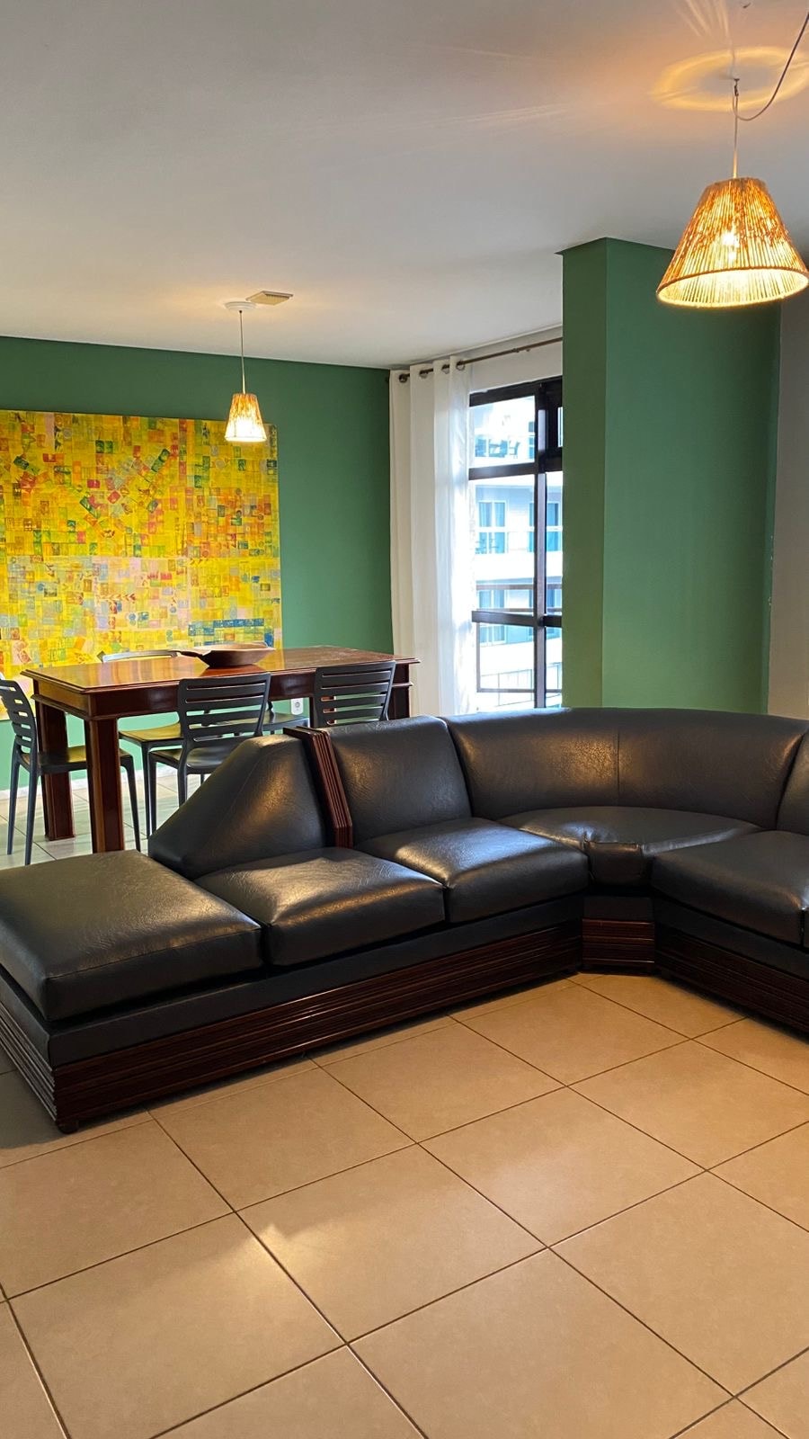 Belo,Novíssimo e Amplo apartamento Avarandado, com 2 quartos :1 Suíte c/TV cama de casal, cama de solteiro e 1 colchão solteiro, 1 Quarto cama Queen ambos com ar condicionado. Banheiros com água quente, secador de cabelo.Sala 2 ambientes, mesa de jantar p/8 pessoas, TV 55"a Cabo, SKY, NETFLIX, INTERNET ALTA VELOCIDADE, sofá Cama de Casal, AMPLA COZINHA completa, Coller. Área de Serviço c/Filtro c/ água gelada e ambiente, Máq. Lavar, FERRO. 2 vagas garagem. Roupa de cama,mesa e banho. Elevador.