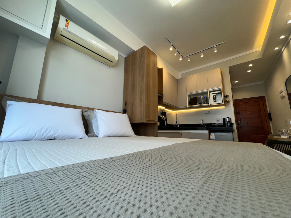 Nosso espaço conta com design moderno para que nosso hóspede viva uma experiência marcante na Capital Federal. O studio possui cozinha americana completa com utensílios e eletrodomésticos. Dispomos de ar condicionado split, smart TV , internet de alta velocidade, banheiro , iluminação confortável, escrivaninha com cadeira, guarda roupa, cama tamanho padrão,colchão confortável, roupa de cama, toalhas de rosto e banho, check-in facilitado. A 2 minutos para o Parque e também para o centro clínico.