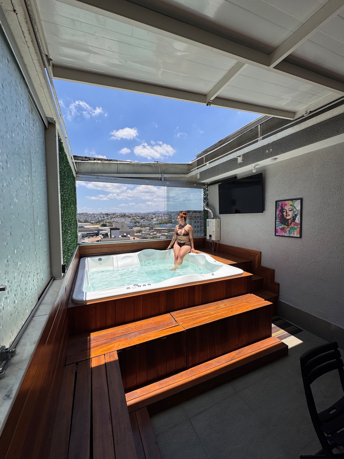 Simplicidade, calma, relaxamento: Cobertura linear com espaçosa varanda, banheira dupla de hidromassagem e chuveiro ao ar livre, suíte, sala, cozinha contígua ao espaço aberto, com vista para o Outeiro da Glória e Santa Teresa nos horizontes. Com estilo, no coração 🧡 pulsante do Rio: acesso fácil a um só tempo a cultura e natureza, praia e vida noturna. Na lista da Time Out dos 🌎 10 bairros mais legais do mundo em 2024. ✈️ Aeroporto Santos Dumont a 10 min de carro. 📍Metro Glória a 5 min a pé.