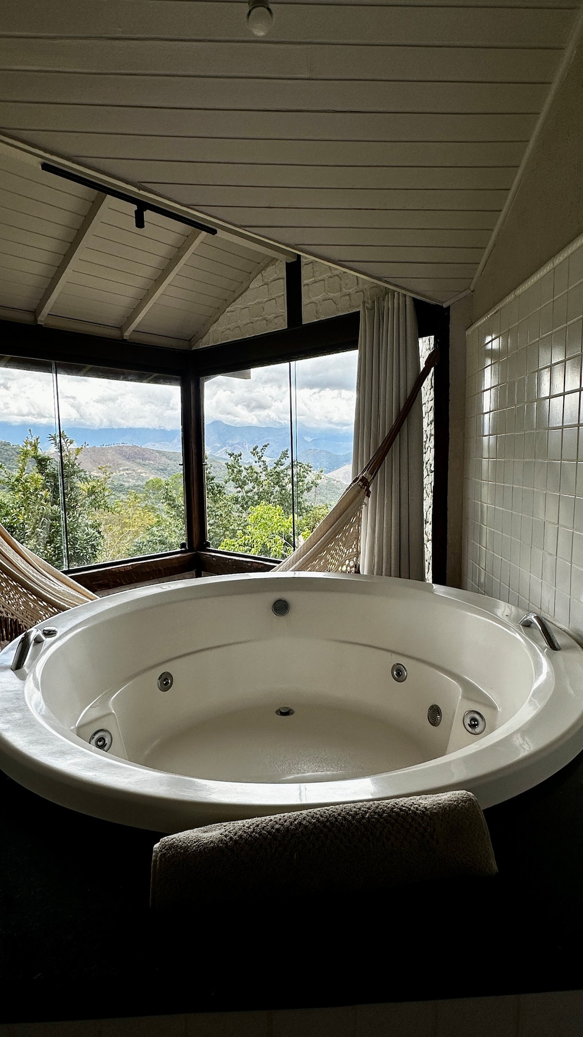 Relaxe neste Studio único e tranquilo. Studio Lírio é aconchego, paz e mimo. Com detalhes em cada cantinho, uma hidro convidativa com vista especial, lareira para momentos únicos, uma rede para sentir o tempo desacelerar e janelas que apresentam um visual impressionante, além de ar condicionado quente e frio. Com cozinha bem pensada para preparo de refeições com tudo o que precisa, muito charme e contato com a natureza exuberante. Perfeito para descanso e conectar com o que realmente importa.
