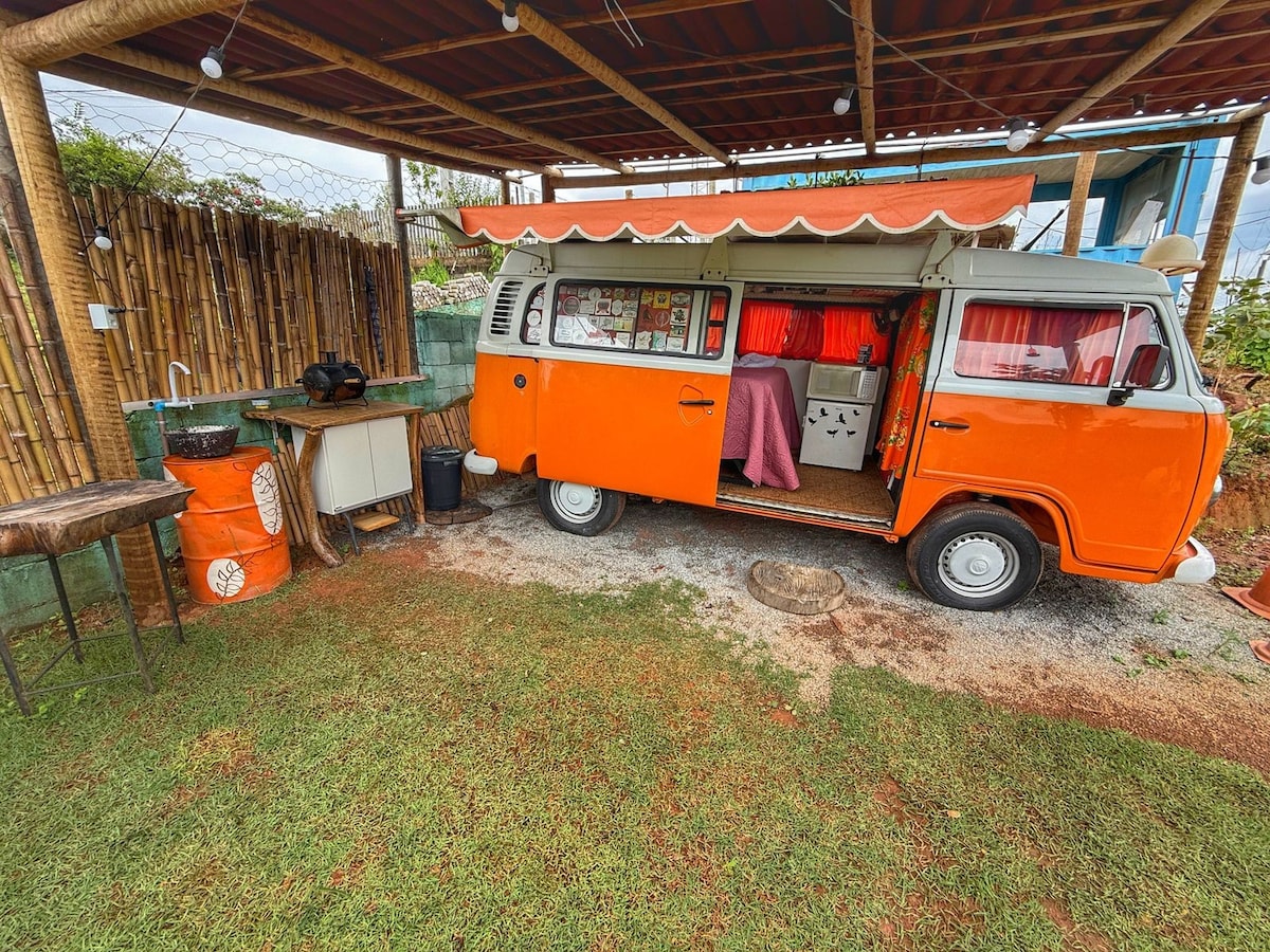 Embarque nessa experiência diferente e inesquecível, que é se hospedar num chalé montado e equipado num ônibus Veneza de 1975! Com vista para a exuberante Pedra do Baú e montanhas, a 2km do centro de São Bento. Contamos com: Ar-condicionado Wi-Fi 1 cama de casal/roupas de cama/cobertor Sofá cama Frigobar Freezer Cafeteira elétrica Liquidificador Ventilador Utensílios de cozinha Forno elétrico Micro-ondas Café da manhã (contratado a parte) Estacionamento Banheiro externo Espaço para fogueira