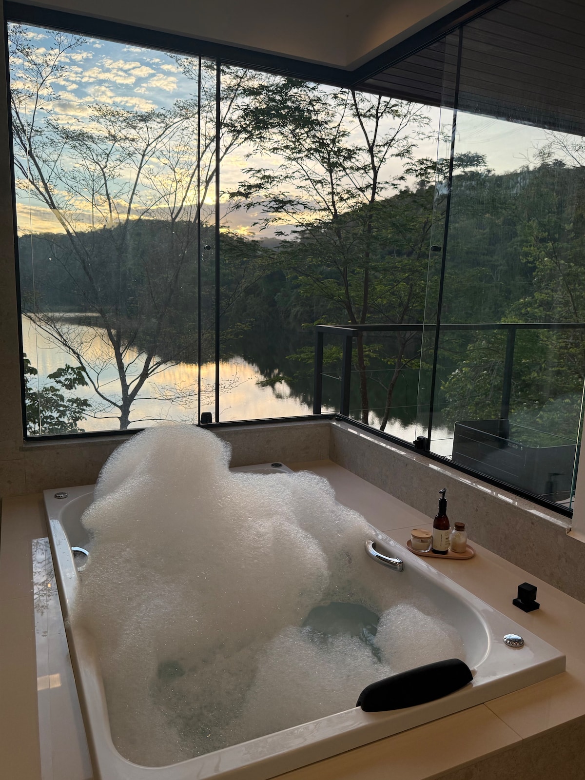 Come and live a unique experience in our Geodesic Dome - Amaná Refuge, in Brotas-SP, with breathtaking views, easy access to the Jacaré Pepira river dam and various attractions. The space includes a comfortable bedroom, a complete indoor kitchen, bathroom, hot and cold air conditioning, heater, Wi-Fi, TV, outdoor kitchen with barbecue and wood stove, kayak for 2 people and a hot tub with hydromassage. We also provide bed linen, table linen and towels. Your pet is more than welcome! Total privacy