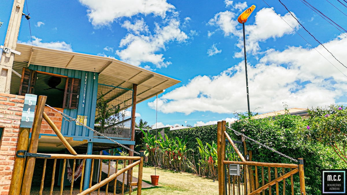 Tenha a experiência de se hospedar em uma casa-container com todo conforto em um lugar de paz, conexão com a natureza, com você mesmo(a) e com seu par! Esse refúgio tem uma vista incrível para as montanhas e uma energia boa que é sentida por todos que passam por lá! A casa fica localizada em um condomínio no "Circuito Terê-Fri" a 20 minutos do centro de Terê (9km). Possui cozinha completa, banheira externa aquecida , cama queen, fogo de chão, rede horizontal, balanço etc.