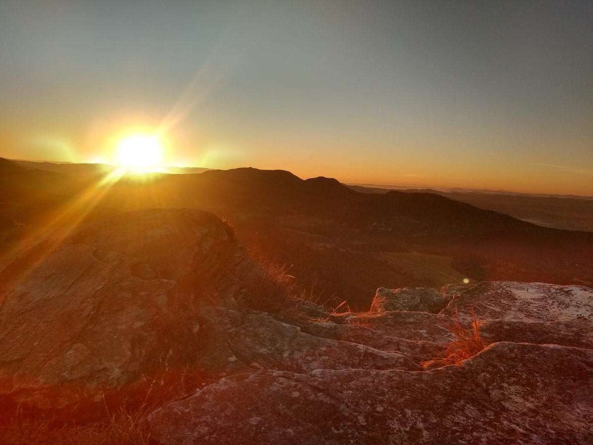 Desconecte-se de tudo ao ficar sob as estrelas. Acorde com o galo cantando de manhã e receba a visita de galinhas livres com seus pintinhos. Pise na grama, visite cachoeiras, faça trilhas e fogueira. A natureza te recarrega! Somos um camping ⛺️ e o valor descrito no anúncio se refere a diária do espaço, incluso cozinha equipada, banheiro com água quente, espaço de trabalho, e você pode acessar mais detalhes na descrição. Caso você não tenha uma barraca eu posso alugar por R$50,00 aparte.