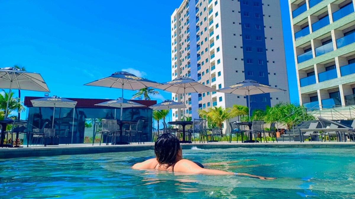 Relaxe com estilo ao ficar neste lugar luxuoso, próximo a restaurantes e praça de alimentação (Em frente ao resort). Farmácias, Conveniências e Mercados a 2 a 3 minutos de carro ou 10 a 15 minutos de caminhada.