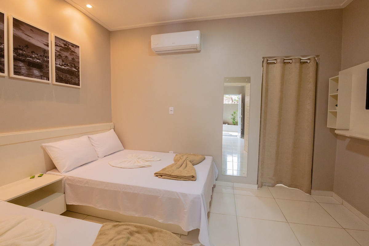 A vila ypáwa oferece aos seus hóspedes quartos climatizados, a poucos passos da praia do lago verde e a 150 metros da vila de alter do chão. Lugar ideal que procura praticidade para fazer tudo e um ambiente reservado em meio a floresta. Vila ypáwa, seu lugar na Amazônia. Banheiro privativo!