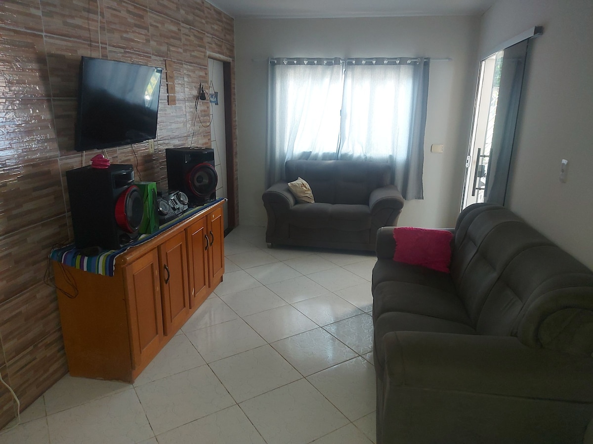4 quartos: 1 suíte cama Queen 1 rede e ar condicionado; 1 quarto cama casal 1 colchão casal e ar condicionado; 1 quarto cama casal, 1 colchão solteiro e ar condicionado, 1 quarto com cama casal e ventilador, banheiro social, banheiro de serviço, cozinha, sala em 3 ambientes, pátio, garagem 4 veículos. Equipada com TV, fogão, geladeira, freezer, microondas, cafeteira, liquidificador sanduicheira, pratos copos e talheres. Cobramos 1/2 diária para check in antecipado ou checkout após hora prevista.