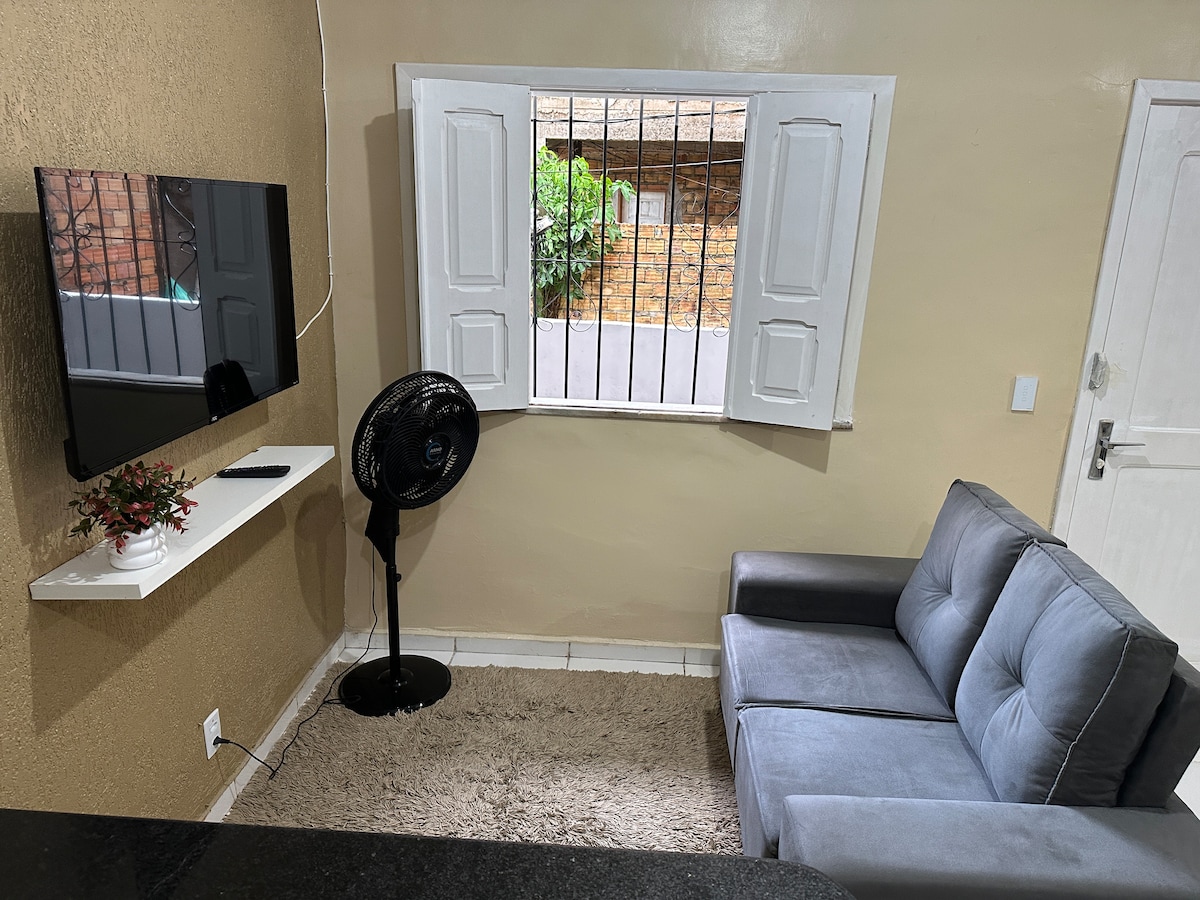 Excelente localização. Residencial familiar, seguro e tranquilo. Um quarto com cama casal queen, cozinha, banheiro, área de ventilação e uma sala onde se pode adicionar uma cama de solteiro. Próximo ao corpo de bombeiros, supermercado, farmácias e lojas diversas.