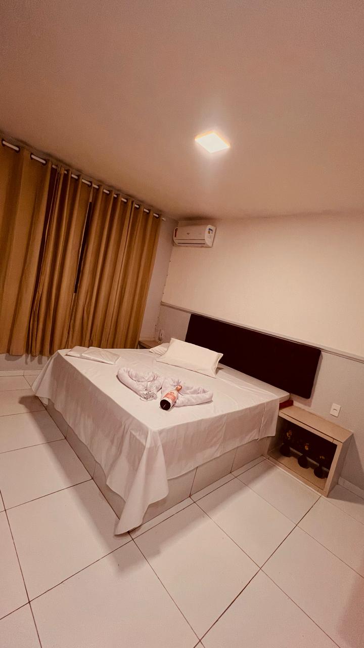 Os quartos possuem cama de casal, ar condicionado, TV smart, banheiro privativo.