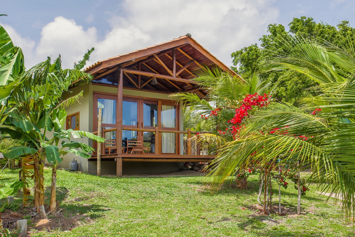 Estou na Travessa dos Hibiscus a 650 m do centro. Chalés amplos tipo estúdio, cama e cozinha num espaço só (utensílios básicos, tenho mais se necessário), banheiro privado. Colchão de casal molas ensacadas. Pátio com mesa, cadeiras e rede. Jardim arborizado e estacionamento interno. Forneço roupa de cama e banho que troco semanalmente. Ar-condicionado! Tenho Wi-Fi 5G e 2G. Não tenho TV. Gatos presentes no jardim. Os timbus, vivem na propriedade e eliminam a animais peçonhentos. Não portam raiva.
